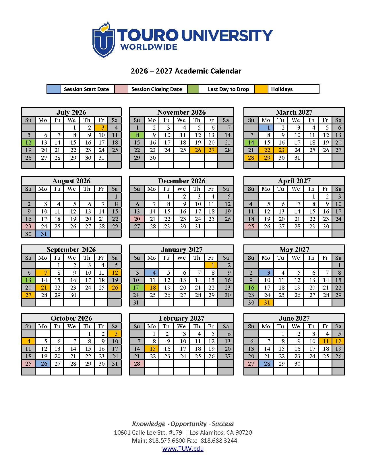 Last Day to Add/Drop | July 13 | September 14 | November 9 | January 18 | March 15 | May 17 |